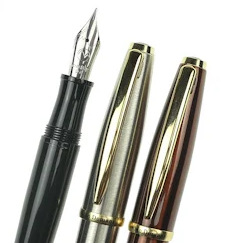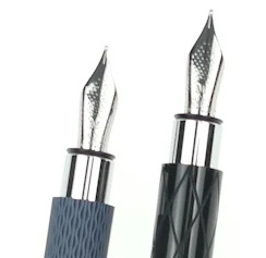 The Ambition line of fountain pens have strong design elements, providing a touch of luxury. Available in either wooden or precious resin barrels with a stainless steel nib, chrome plated end caps and a spring loaded clip.