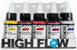 The High Flow Acrylics are a very versitile acrylic ink. You can use them with brushes, pens, refillable markers and airbrushes or just pour straight from the bottle.