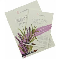 The Hahnemuhle Sugar Cane watercolour paper is made from 70% sugar cane fibre and 30% cotton rag. This bright natural white paper is 290gsm and has a distinct linen type grain which could be categorised as Cold Pressed. The paper is suitable for all watercolour techniques and also makes a great surface for mixed media.