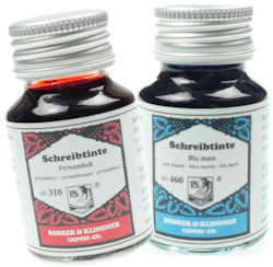 The writing inks feature high-class, brilliant colourants, specially treated water and minimal amounts of additives. This well-balanced nature of the ink provides optimal flow characteristics for fountain pens. Of note are the two Iron Gall inks in the range. The colour of the iron gall inks intensifies over time and they are considered permanent.